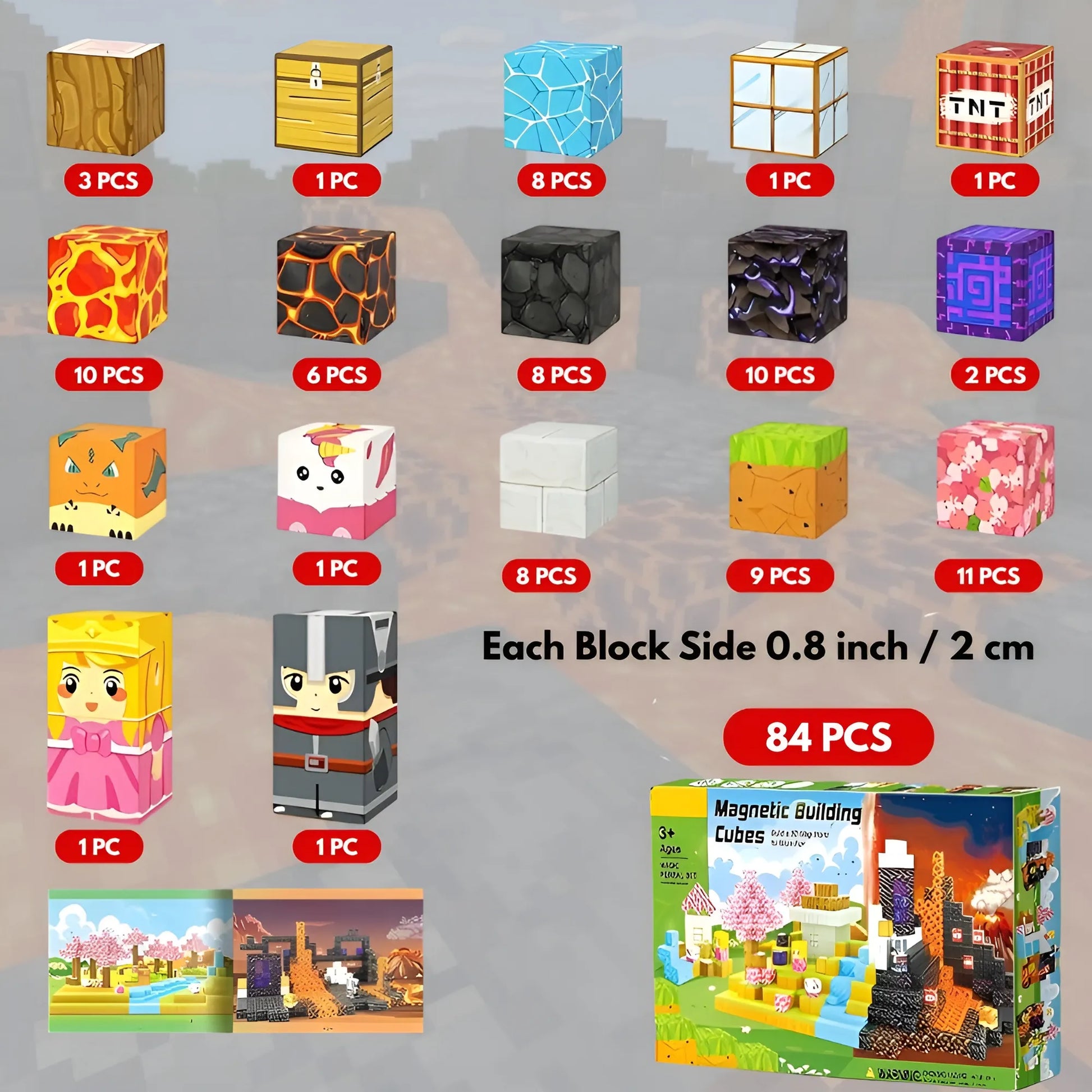 - • Dimension: Jeder Block 0,8" x 0,8" x 0,8" / 2 cm x 2 cm x 2 cm