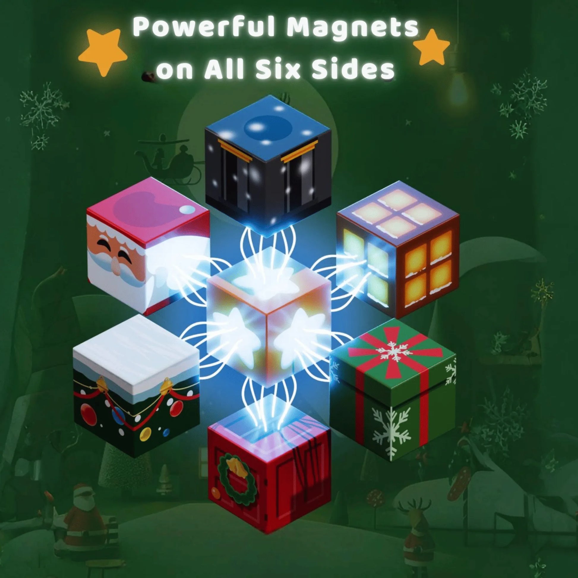 Les enfants peuvent construire des chalets enneigés, des sapins de Noël, l’atelier du Père Noël et bien plus encore — le tout avec des cubes magnétiques qui s’assemblent facilement sous tous les angles. Chaque bloc se connecte fermement grâce à 8 aimants puissants, donnant vie à l’imagination tout en occupant les petites mains pendant des heures.
