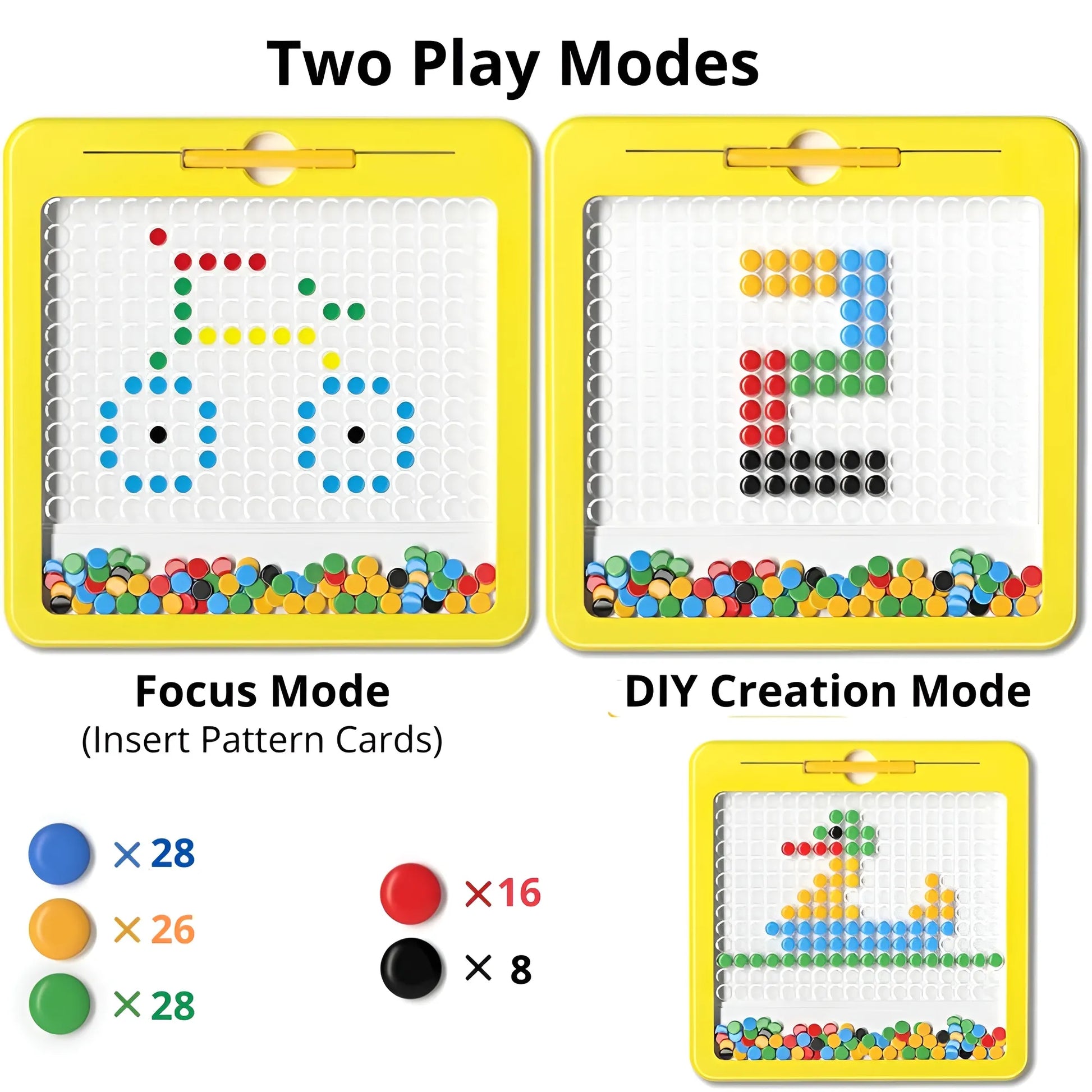 - • Contains: Magnetic dots board X 1, magnetic pen X 1, magnetic beads X 108, pattern cards X 10