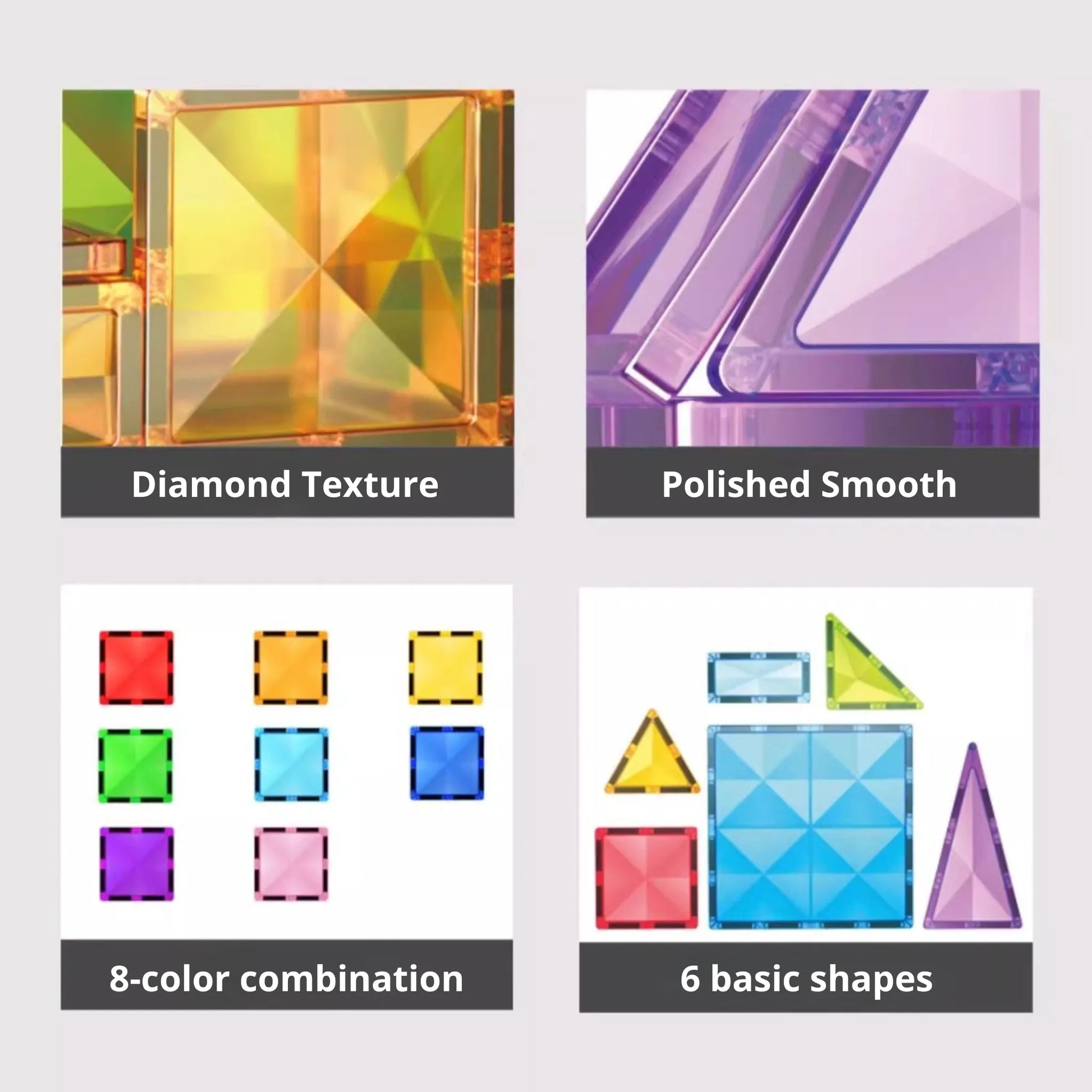Discover the Onenazo Diamond Magnetic Tiles in 26, 38, 50, 72, 100, and 125 piece sets. Fun, creative, and educational building toys for kids age 3+.