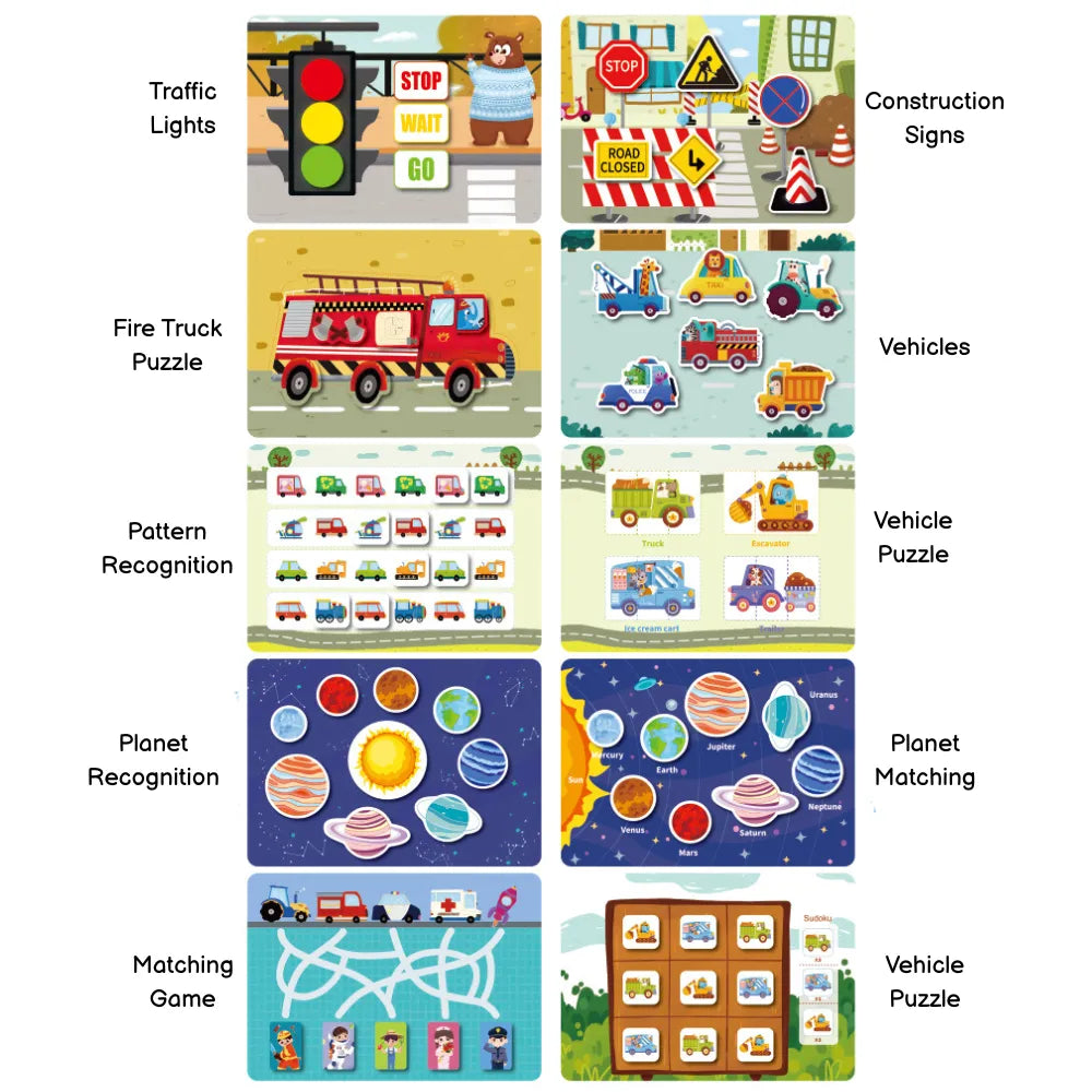 🚗 Perfect for home & travel - Lightweight and easy to carry, the Busy Book is great for quiet time at home, car rides, flights, or waiting moments. A screen-free activity parents love and kids enjoy.